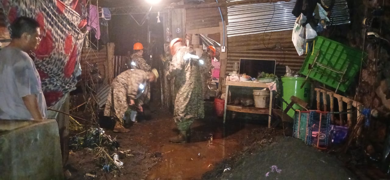 Elementos de la Fuerza Armada trabajan la noche del sábado en la remoción de escombros...