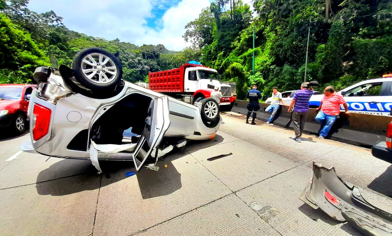 La Policia Nacional Civil (PNC), brindó auxilio los afectados de un aparatoso accidente en la carretera Panamericana, sector de Los Chorros, en sentido a Santa Tecla, unos metros antes de la incorporación a bulevar Monseñor Romero.
