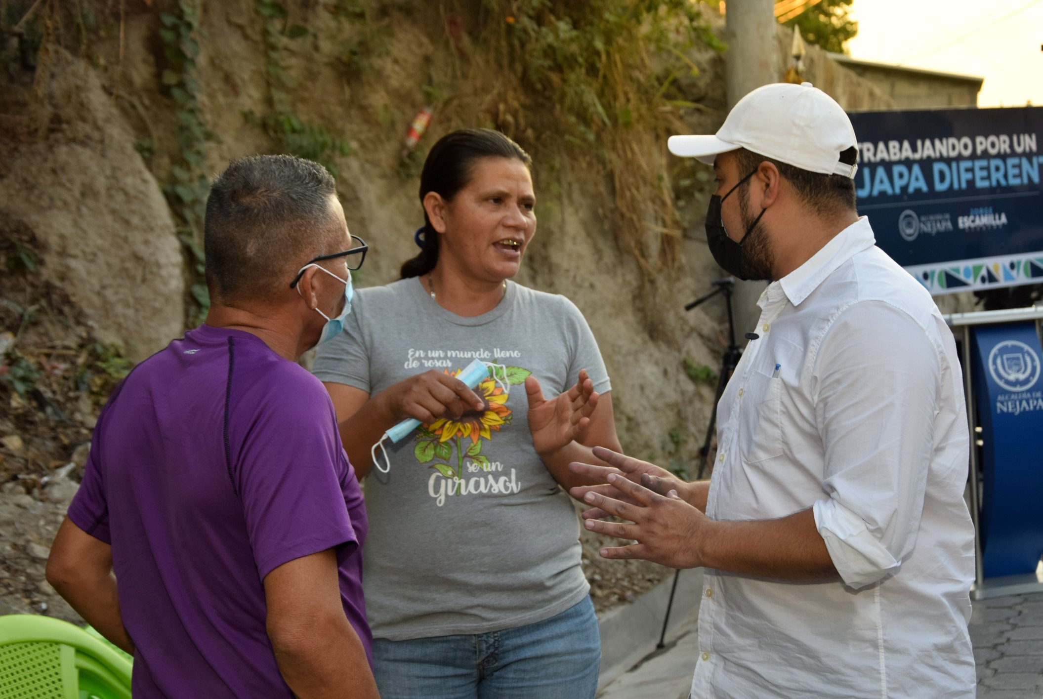 El alcalde de Nejapa, Jorge Escamilla, entregó tres tipos de obras a los habitantes del municipio; una de las obras fue la reconstrucción vial de 400 metros de una calle que estaba en el abandono, los trabajos consistieron en la pavimentación con adoquinado y empedrado.