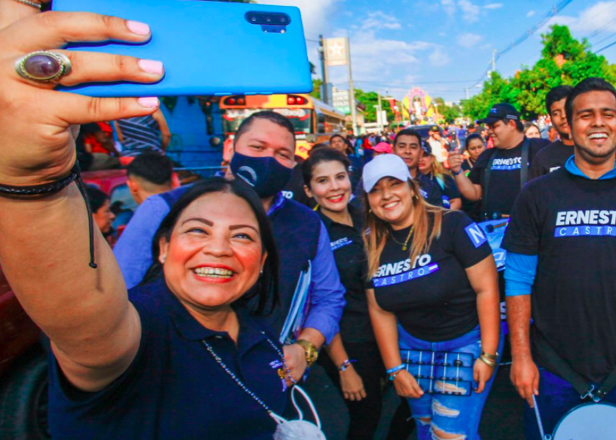 El recorrido del desfile se realiza de la colonia 10 de Octubre hacia el mercado municipal, durante el recorrido, la alcaldesa Andrade, aprovechó este espacio para tomarse fotografías, y convivir de una forma diferente con sus ciudadanos.