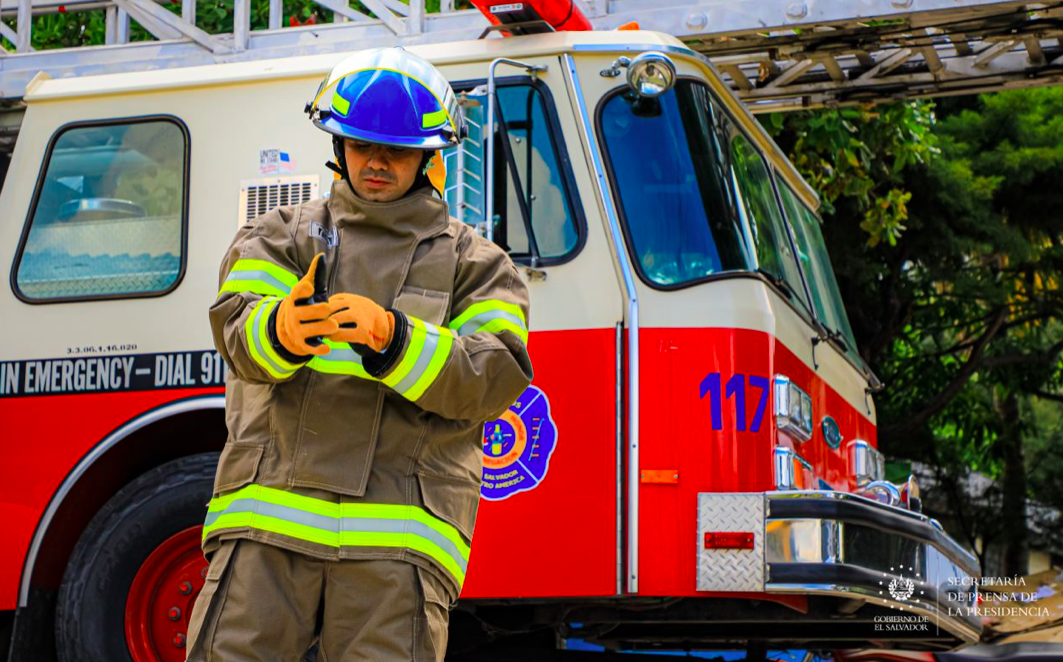 El director del Cuerpo de Bomberos, Baltazar Solano, hizo entrega de moderno equipo de protección, como parte de un proceso de transformación que ejecuta el Gobierno del Presidente de la República, Nayib Bukele, con las instituciones de primera línea de emergencias.