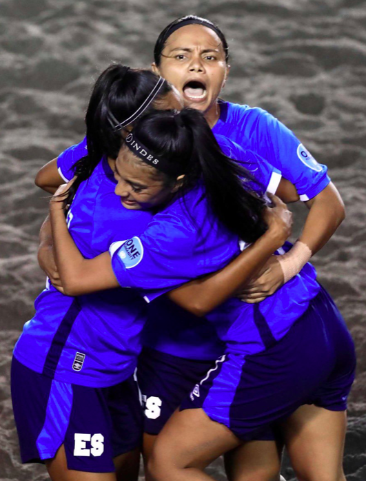 El Presidente del INDES, Yamil Bukele, celebró el gane de las cangrejitas playeras, e invitó a la afición a apoyarlas durante la segunda jornada del torneo de fútbol playa, disputado en el estadio de la Costa del Sol.