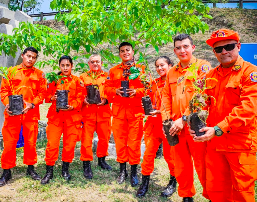 En el marco del Día Internacional de la Tierra miembros del Cuerpo de Bomberos de El Salvador, esta mañana entregaron y sembraron árboles de diferentes especies en el municipio de Soyapango, de San Salvador, para ayudar a repoblar las áreas que han sido dañadas por los incendios forestales y de maleza seca.