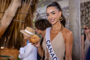 Este martes, las mujeres más hermosas del mundo, probaron una bebida deliciosa y común de la zona costera del país, agua de coco.