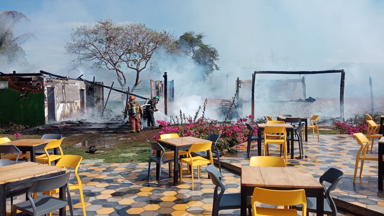 Elementos del Cuerpo de Bomberos sofocaron un incendio en un local de restaurante, en el...
