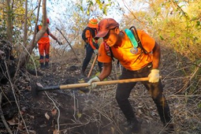 Elementos de Cuerpo de Bomberos de El Salvador extinguieron un incendio en un terreno de...
