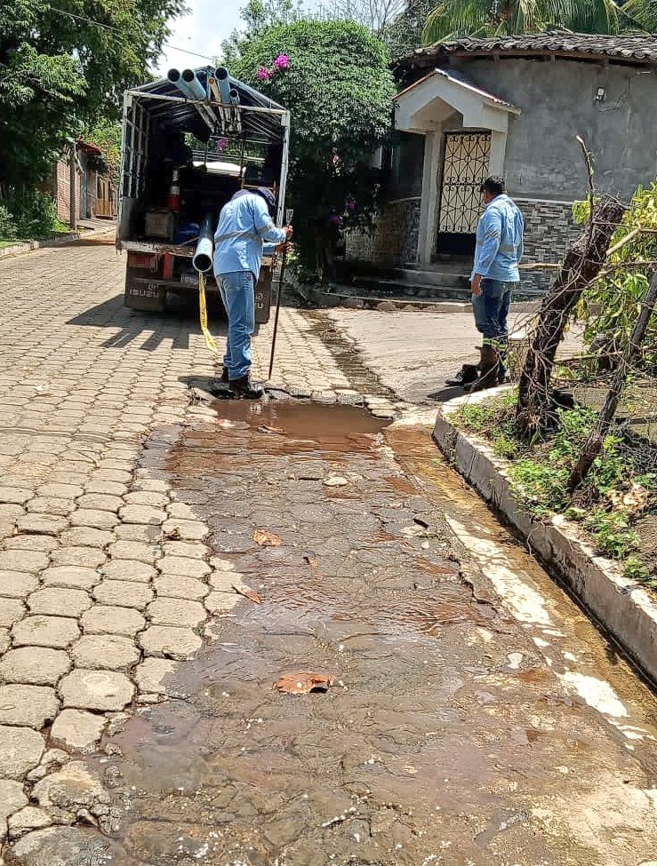 Los “caza fugas” de la región oriental llegaron hasta el municipio de Ozatlán, en Usulután, para ejecutar trabajos frente a la Unidad de Salud de esa ciudad, donde había un derrame de agua que estaba dañando la calle.