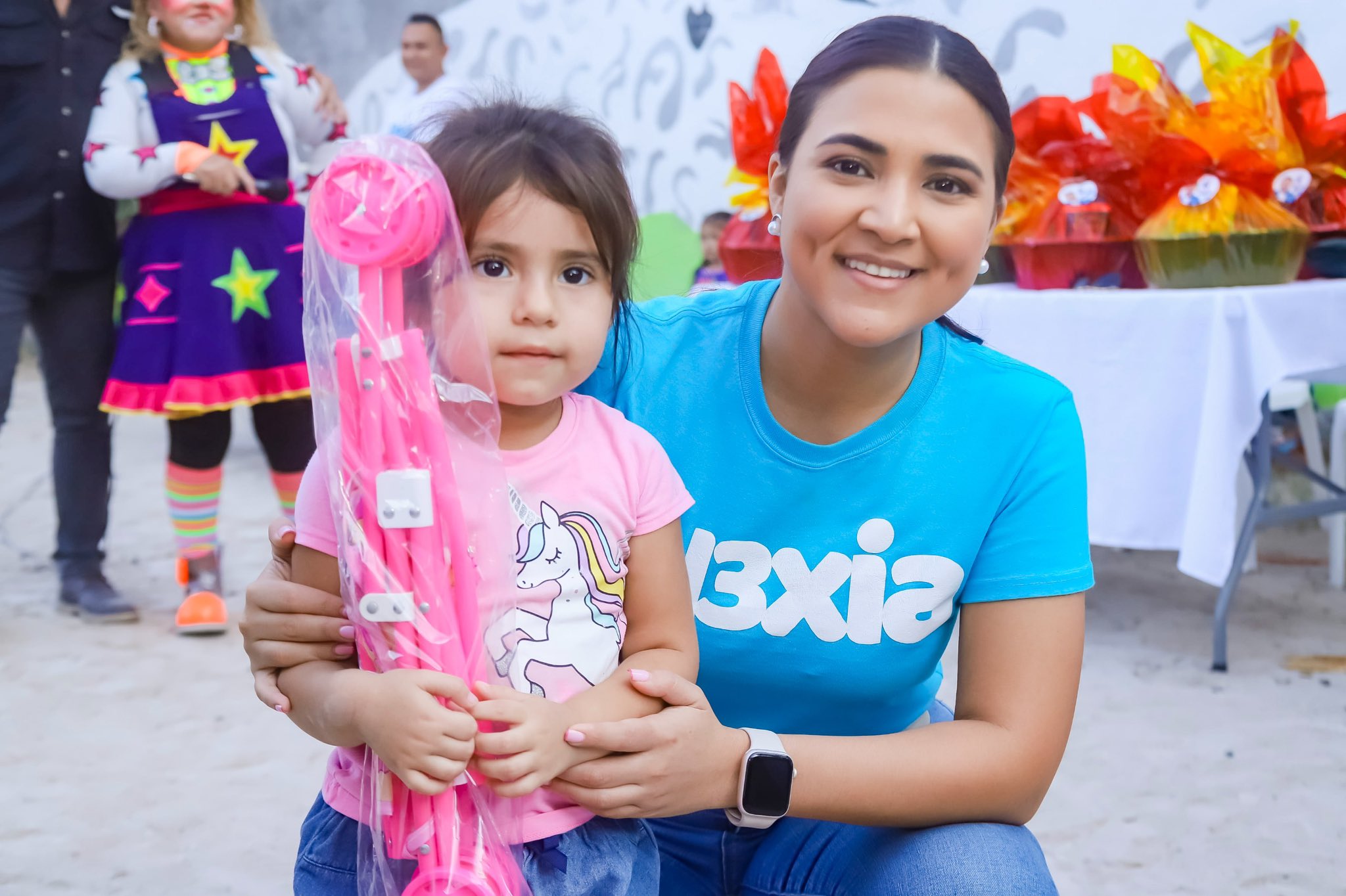 La diputada de Nuevas Ideas y candidata a la reelección a la Asamblea Legislativa, Alexia Rivas, compartió este domingo con niños y adultos un festejo en el municipio de Soyapango, San Salvador. La actividad estuvo rodeado de regalos para los participantes.