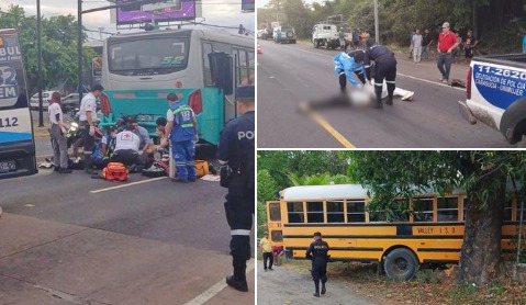 En uno de los casos un motociclista murió sobre el Paseo General Escalón y 75 avenida Sur, Fuentes Beethoven, en San Salvador, tras impactar en la parte trasera de un bus de la R 52 que hacía el alto en el semáforo.