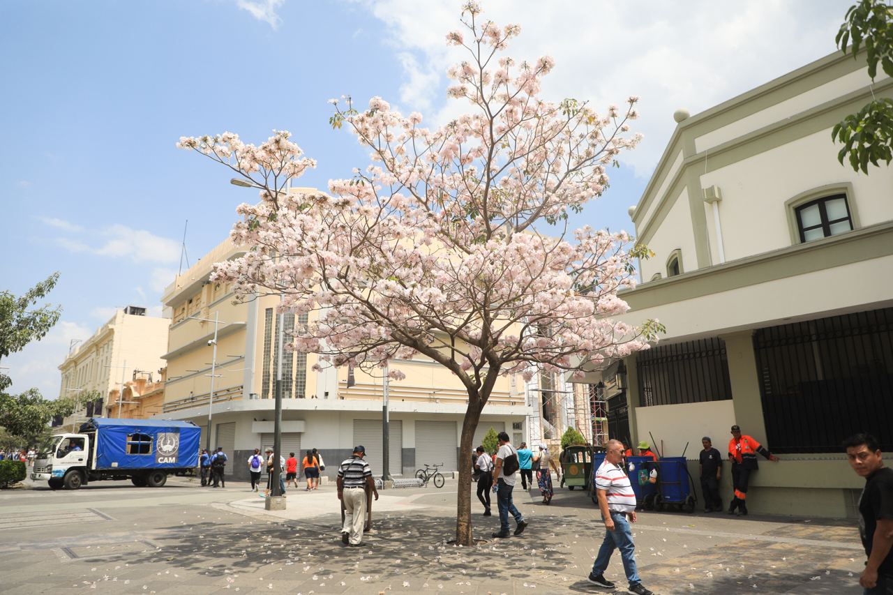 Varios árboles que se caracterizan por sus brotes de flores de color blanco y rosado intenso, ya forman parte de los atractivos del Centro Histórico, así como de otras principales calles del país, luego de ser trasplantados por equipos de Obras Públicas.