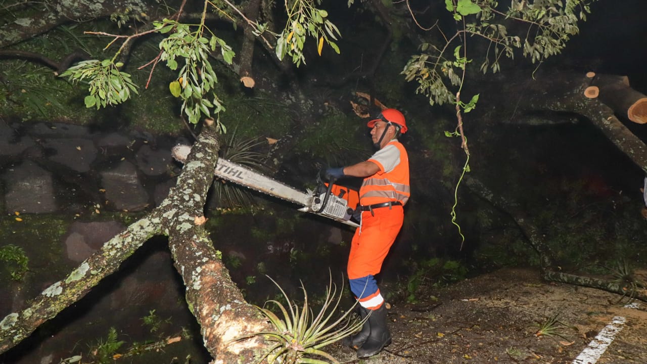 Equipos tácticos operativos de la Dirección General de Protección Civil removieron varios árboles que obstaculizaban el paso en la carretera Panamericana, en la zona de Santa Tecla.