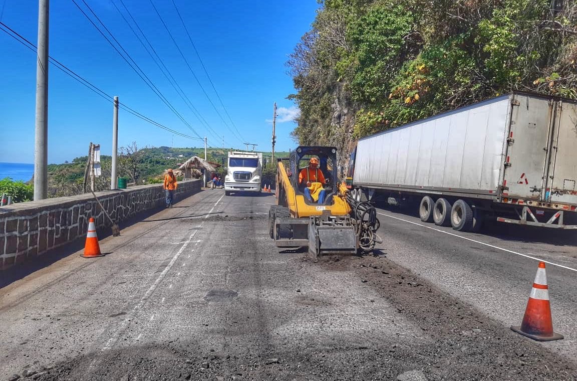 Este lunes una cuadrilla del FOVIAL se dedicó a reparar un tramo de la carretera Litoral, en la zona de la playa El Zonte, en La Libertad y cerca del límite del departamento de Sonsonate.