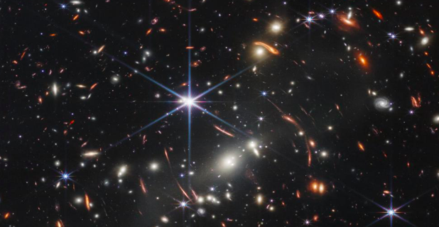 Se trata de una imagen del cúmulo de galaxias SMACS 0723 que rebosa de detalles y que la NASA explica que hay miles de galaxias, que incluye los objetos más débiles jamás observados en el infrarrojo. Es un trozo del vasto universo en el cielo del tamaño aproximado de un grano de arena sostenido a distancia por alguien en el suelo.