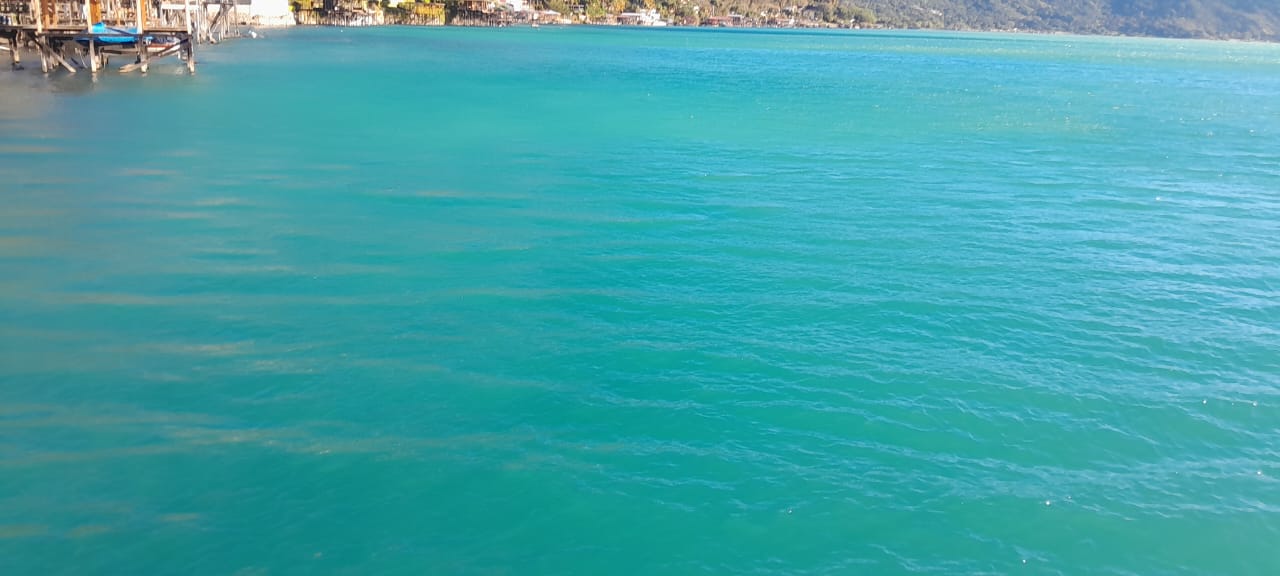 Reportan Observadores locales de los alrededores del lago de Coatepeque, en Santa Ana, se está tornando color turquesa en la zona del Castillo del Rey.