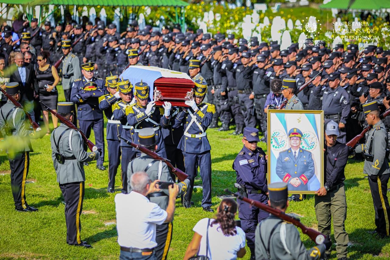 Durante la ceremonia fúnebre, altos mandos de la policía y familiares dedicaron unas emotivas palabras de reconocimiento a quien fuera el director de la PNC y uno de los principales actores en la implementación del Plan Control Territorial y el régimen de excepción que han llevado al país a ser uno de los más seguros del hemisferio occidental.