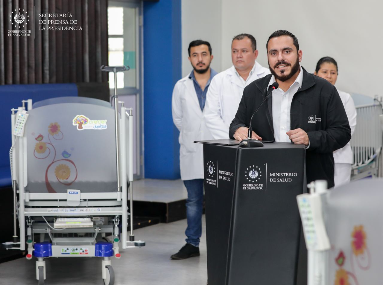 Autoridades del Ministerio de Salud (MINSAL), entregaron esta tarde un lote de camas eléctricas para cuidados intensivos al Hospital Nacional de Niños Benjamín Bloom.