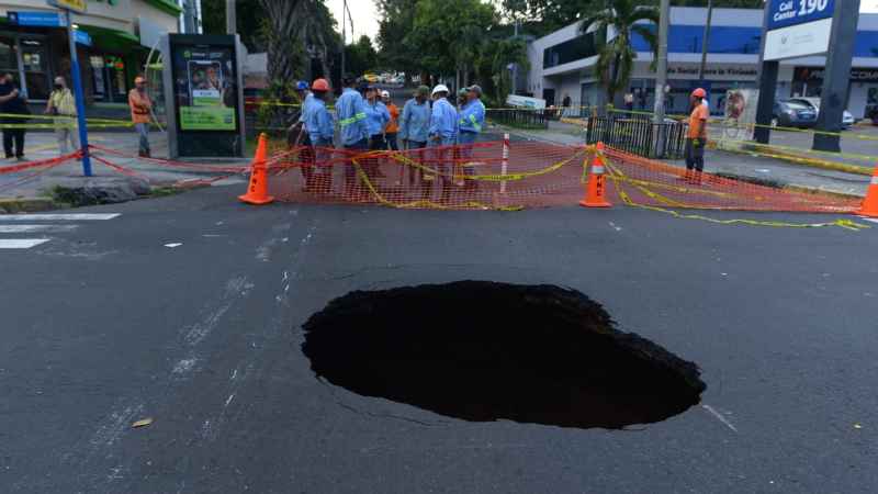 Esta tarde, elementos del Fondo de Conservación Vial (FOVIAL), y del Ministerio de Obras Públicas (MOP), inspeccionan las causas de la generación de una cárcava en la intersección del Paseo General Escalón y la 79 avenida norte, para ser reparada de forma inmediata.