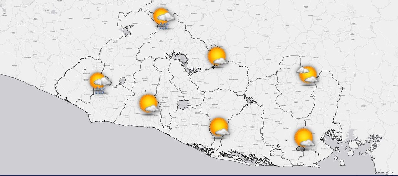 De acuerdo con el reporte el cielo se presentará de poco a medio nublado en horas de la mañana y se irá despejando; sin embargo, las nubes se mantendrán para la cordillera volcánica occidental y el norte de Chalatenango.