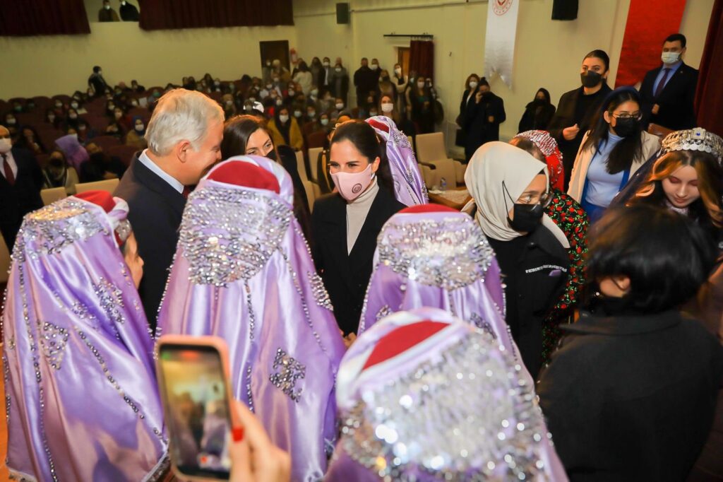 Durante su visita al centro de menores de Turquía, las niñas del lugar realizaron un baile Harmandali en su honor. Posteriormente recibió un presente de la institución.