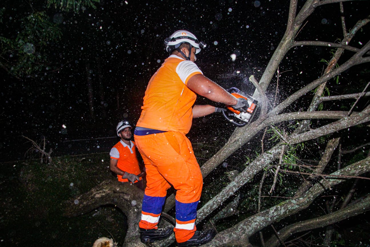 Esta noche, la Dirección General de Protección Civl informa sobre las distintas actividades del Equipo Táctico Operativo sobre la remoción del árbol caído que obstaculizaba un carril en el kilómetro 18 de la carretera que conduce de San Salvador a Comalapa.
