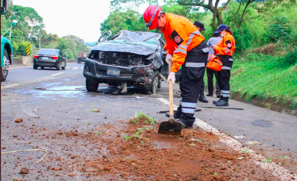 Autoridades de la Dirección de Protección Civil, reportaron que un equipo táctico operativo realizó labores de limpieza y remoción de escombros, luego de un accidente de tránsito que ocurrió en el kilómetro 40 y medio de la carretera que conduce de Sonsonate a San Salvador.