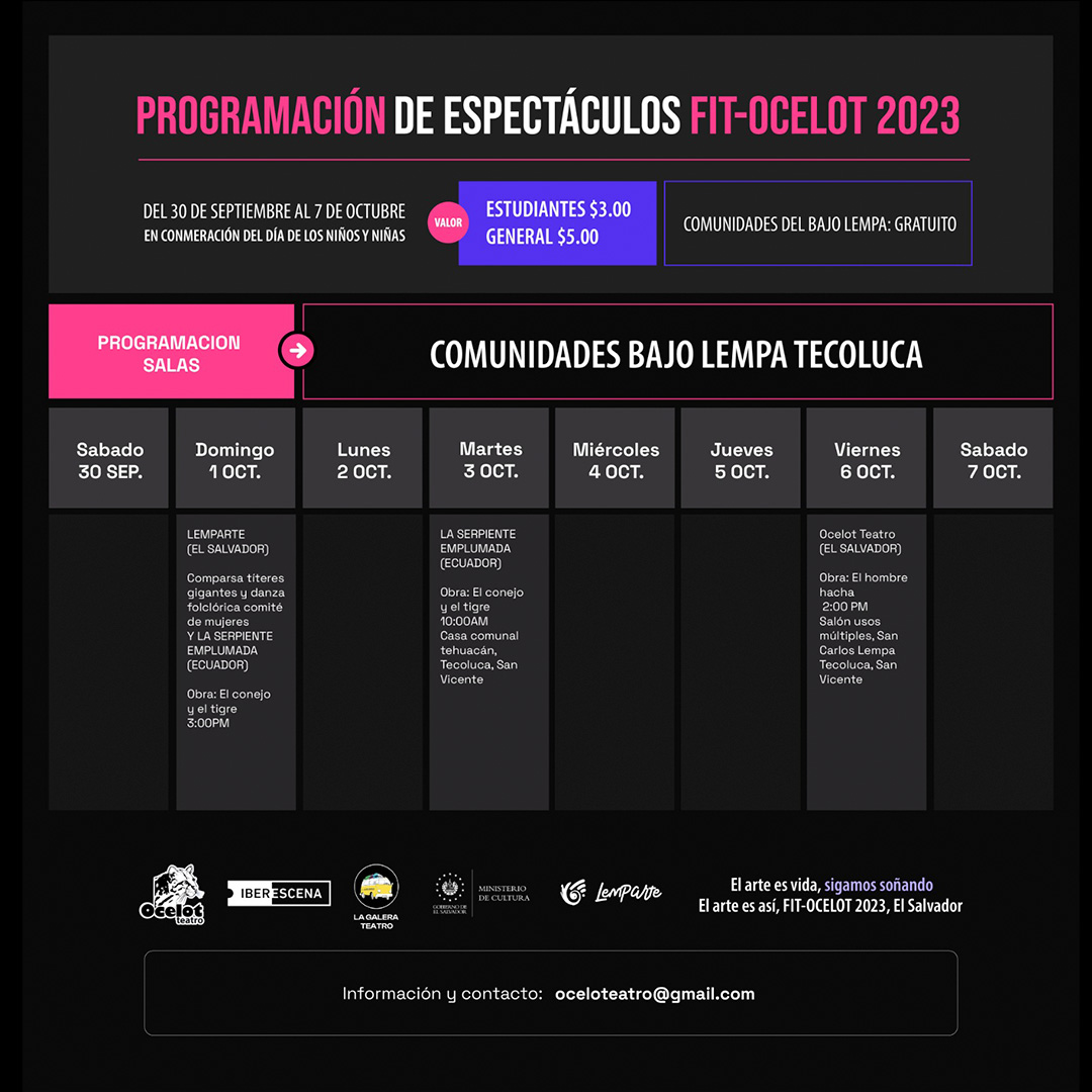 El Ministerio de Cultura informa sobre el III Festival Internacional de Títeres FIT-OCELOT, que se desarrollará del 30 de septiembre al 7 de octubre.