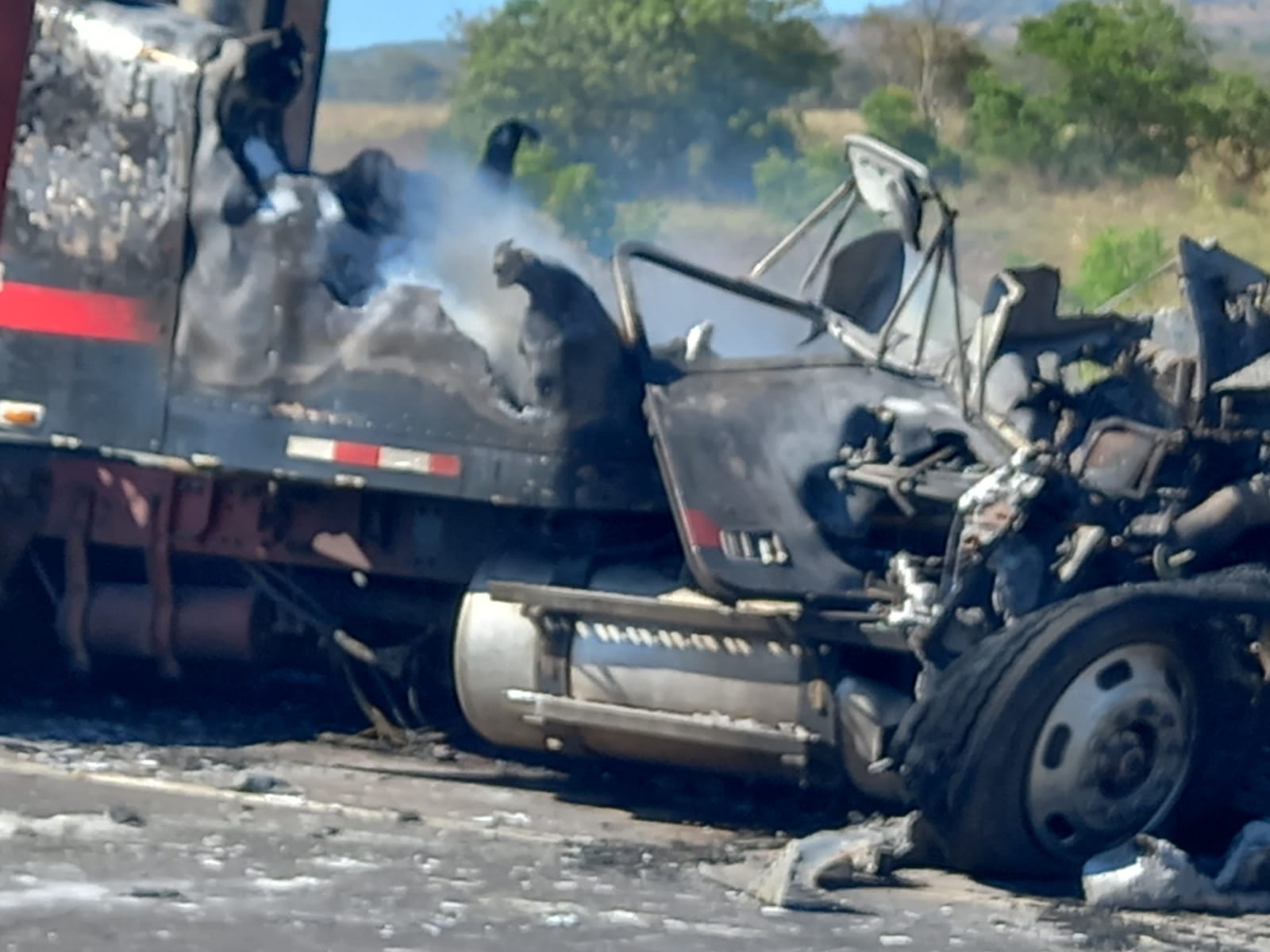 Producto del accidente de tránsito, el cabezal se incendió y fue destruido en su totalidad por estar fabricado en su mayor parte de fibra de vidrio.