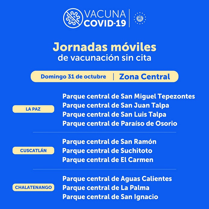 El ministerio de Salud anunció a través de su cuenta de Twitter sobre los municipios del país que este domingo se realizarán jornadas masivas de inmunización contra el Covid-19.