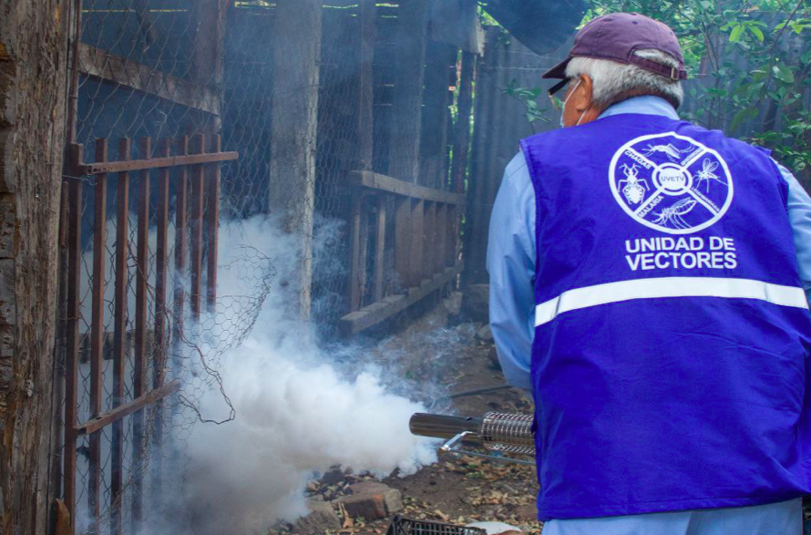 Personal del Ministerio de Salud este jueves siguió con una jornada de fumigación contra el mosquito del zancudo en el municipio de Candela de La Frontera, de Santa Ana, que es transmisor de las enfermedades dengue, zika y chikungunya.