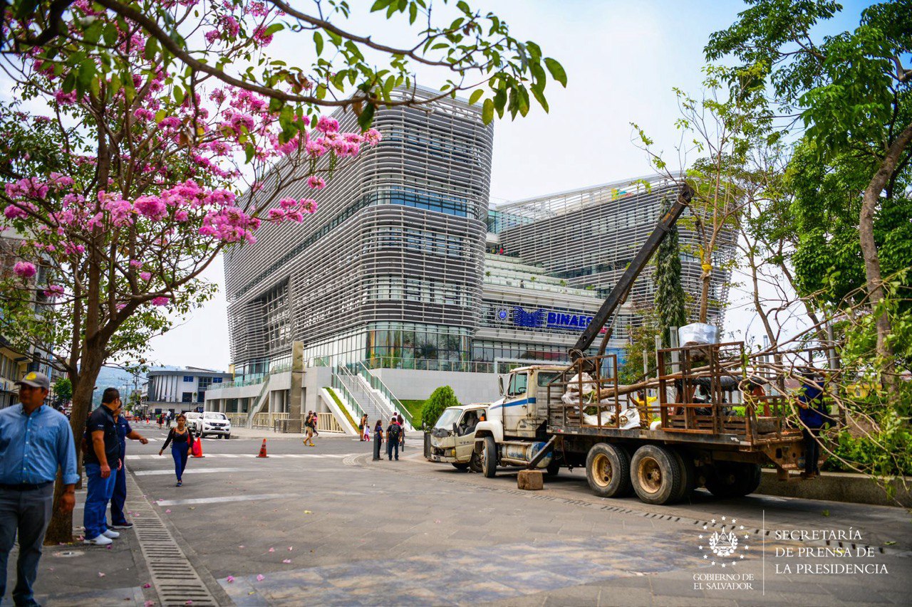 Según el ministro de Obras Públicas, Romeo Rodríguez, se realiza esta labor en diferentes plazas públicas, entre ellas Gerardo Barrios, frente a la Biblioteca Nacional de El Salvador (BINAES), La Libertad y otras.