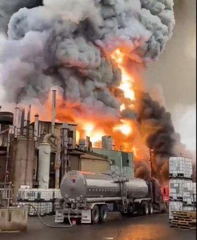 El fuego inició a las 9:00 de la mañana hora local y tras la explosión de un contenedor en el área de envíos de la planta llamada Carus Chemical, cuya fábrica de productos químicos fue fundada en 1915, que provee productos y servicios para el tratamiento de aguas municipales, la purificación de aguas residuales y aire, y la reparación de suelos.