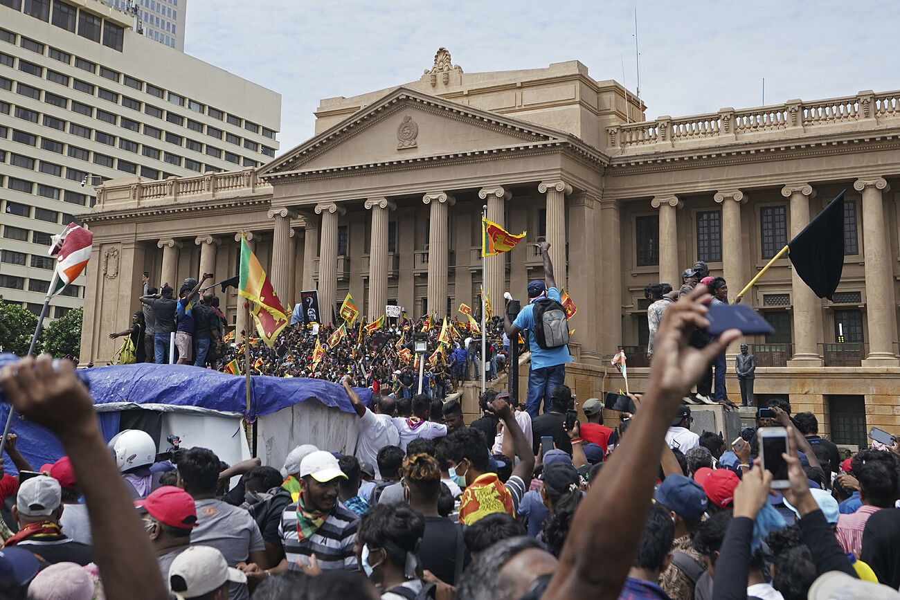 Mientras que, miles de manifestantes asaltaron el palacio presidencial de Sri Lanka, en Colombo, en donde pedían la dimisión del mandatario, Gotabaya Rajapaksa, por su manejo ante los problemas internacionales.