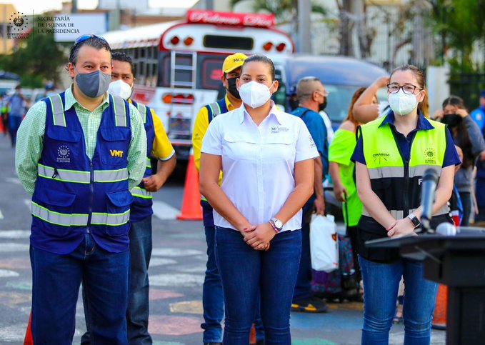 La presidenta del Instituto Salvadoreño de Turismo (ISTU), Eny Aguiñada, junto al viceministro de Transporte, Saúl Castelar, verificaron esta mañana el servicio de Buses Alegres, cuyo destino son lugares turísticos del país.