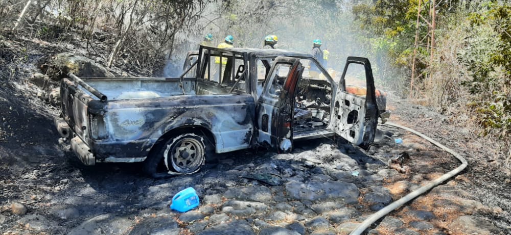 Un incendio en un vehículo sofocaron elementos del Cuerpo de Bomberos de El Salvador en...