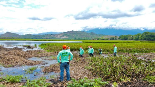 Obras Públicas avanza en limpieza de lago de Güija en Metapán