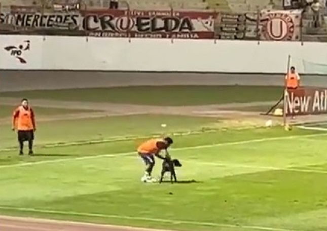 Un perrito protagonizó un curioso momento en el partido entre el Carlos Mannucci y el Universitario de la primera división de Perú al invadir la cancha en el momento en que se iba a lanzar un córner.