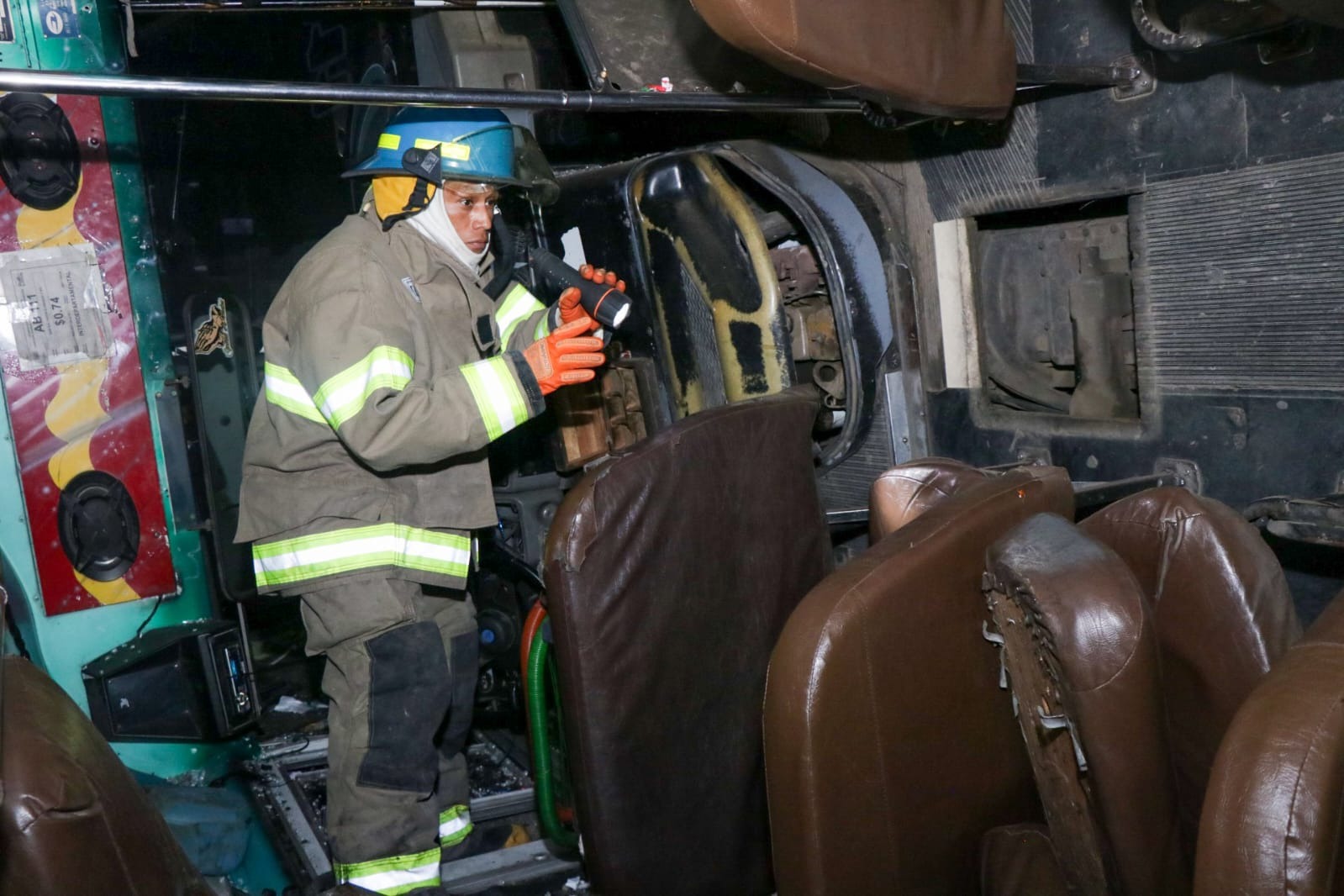 Miembros de Protección Civil, del Cuerpo de Bomberos de El Salvador, socorristas de Comandos de Salvamento y de la Cruz Roja Salvadoreña, asistieron a los pasajeros.